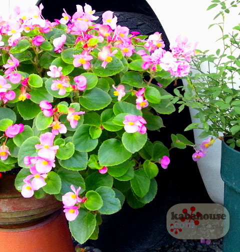 手をかけた寄せ植えを褒めずに、ベゴニアを褒める。