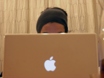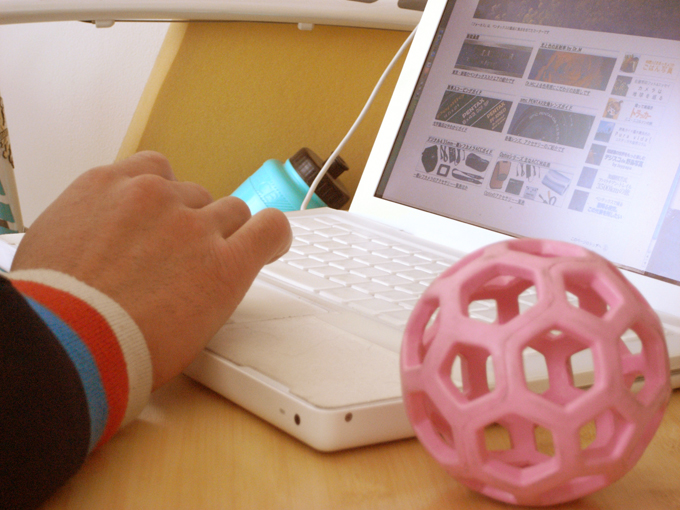 林檎ノートで情報収集中のオット。