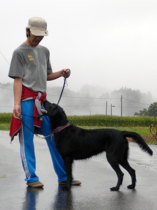 長野で農業体験…雨の中、ナチュラルな(笑)朝散歩。ワンもニンもカメラもビショ濡れ。