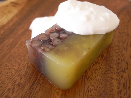 小豆とさつま芋の寒天寄せ+豆乳クリーム 簡単レシピでヒンヤリ冷たく美味なのだ。