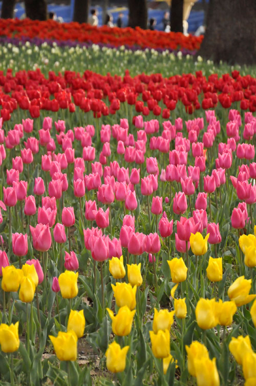 チューリップとガーベラの絨毯。